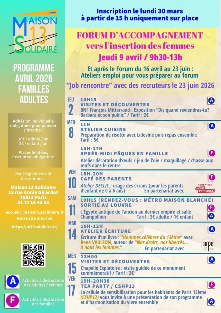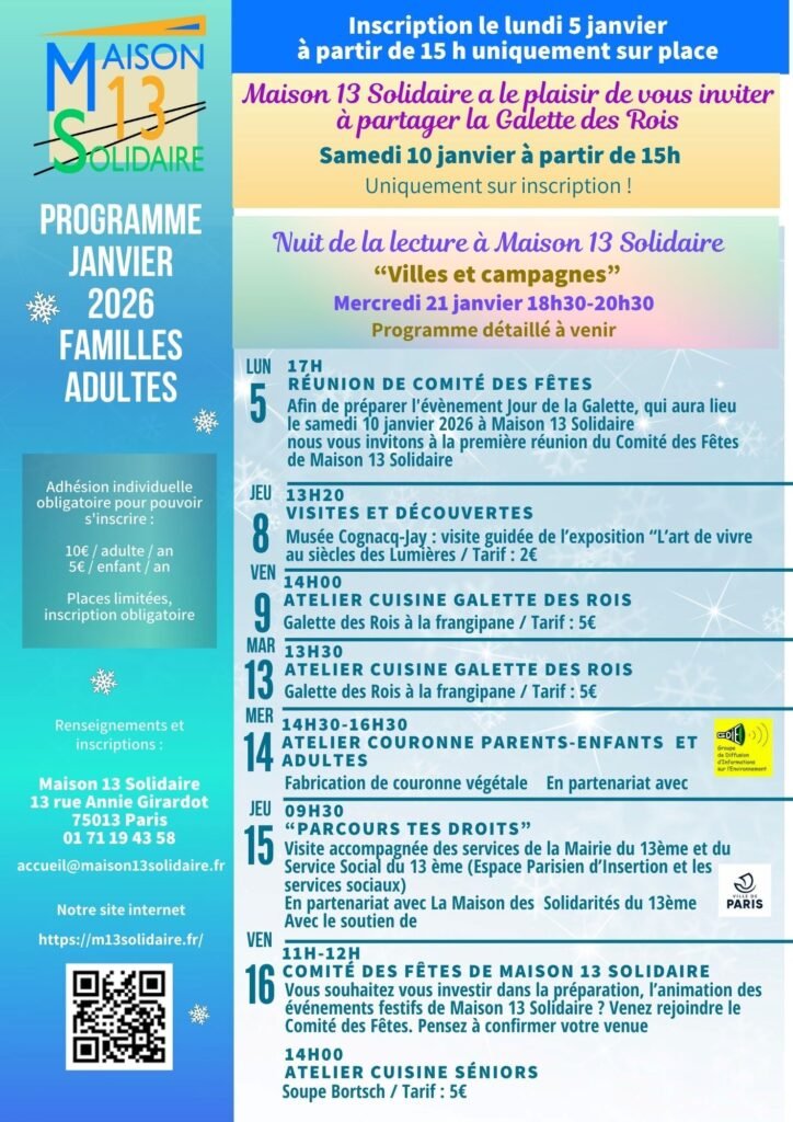 Les activités incluent des ateliers artistiques, des cours de langues, des activités sportives, des cours de cuisine, etc., accessibles à tous.